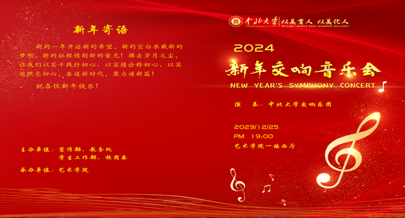在高质量发展征程中艰苦奋斗、砥砺前行的精神,让我们回顾过去,奋进未来。音乐会演绎不同时期、不同风格的经典交响乐章,勾勒出一幅宏伟而富有激情的音乐画卷。将经典与创新相得益彰,展示出乐团成员们卓越的演奏技巧,呈现交响音乐美的声韵。广大师生在音乐的海洋中尽情徜徉,共同奏响甲辰龙年新的乐章!