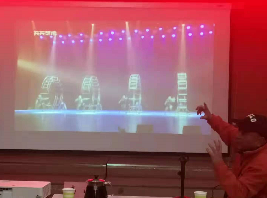在欣赏舞剧《深浅深浅》时,高团长讲到,他本人是带着一双明亮的眼睛,一颗海绵一样的心,来寻找、交流、学习,这才是艺术工作者应有且必有的态度——发现美的眼睛、求知欲渴的内心、勤劳务实的双手。作为一名在部队奋战40余年的老兵、战士,语重心长的与在场全体师生学员共话温情:虽然现在脱下了军装,离开那浩瀚的海洋,来到这一片广袤的大地,来寻找大海的情,大山的魂,这就是我一个老军人永远追求的精神和意志,这就是我们植根于心中的修养,这就是我们艺术家们无需提醒的自觉。