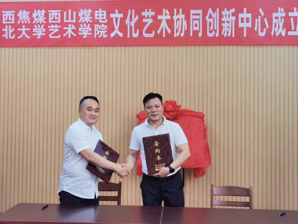 院长王燕平与山西焦煤西山煤电集团公司文体部主任杨志刚代表校企双方签署《建设文化艺术创意协同创新中心战略合作协议》。