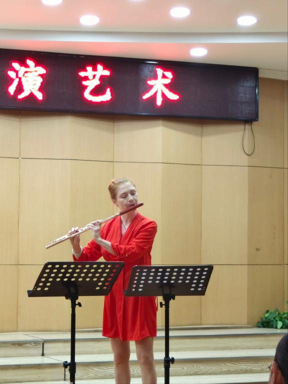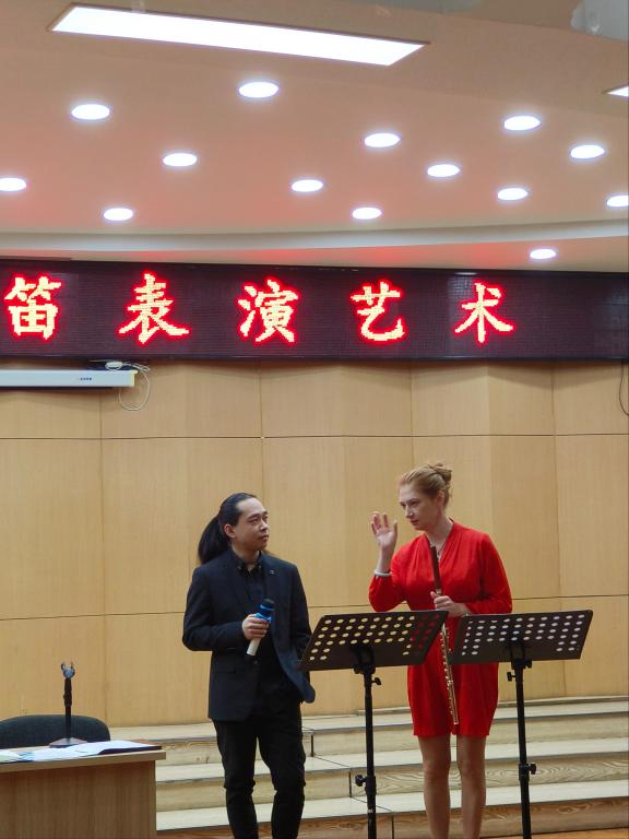 伊丽莎白老师首先介绍了长笛的历史与发展、理想的音色、合理的练习与演奏方法以及现代作品中的特殊技巧,包括弹舌音、泛音等。其次演奏了从巴洛克时期到现代的音乐作品,包括《泰勒曼长笛协奏曲》、《Qianligongchanjuan》、《Tweet》、《Final Demand》等,最后为厂长资源