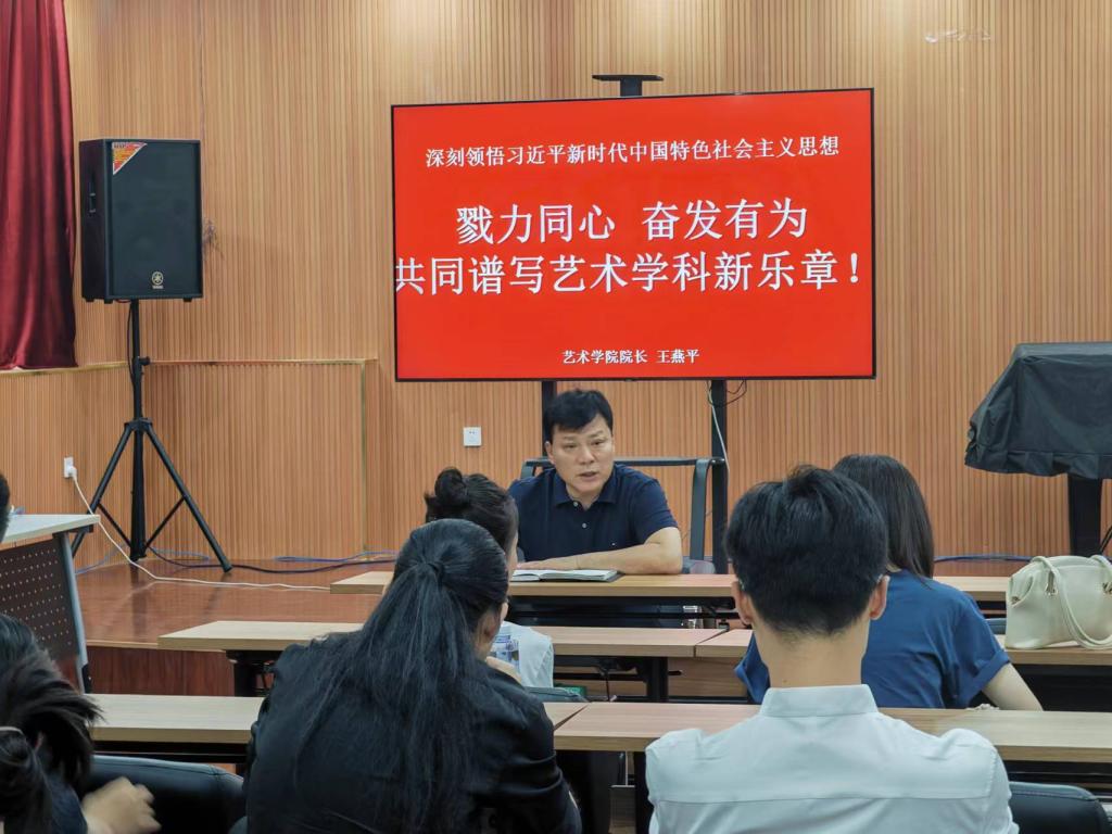 院长王燕平以《深刻领悟习近平新时代中国特色社会主义思想---戮力同心 奋发有为 共同谱写艺术学科新乐章》为题,为全院教工党员讲授专题党课。