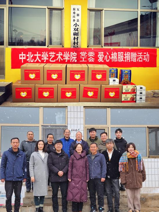 党委及院工会开展“艺心为民暖冬行”暨文化艺术下乡活动。学院党委书记郭云霞、副书记田维飞、工会主席陆晨曦、音乐系曹艺老师及2名艺术志愿者驱车三个多小时,到达忻州市五寨县东秀庄乡小双碾村和狮子沟新村,看望我校在两村工作队的一线老师们,同时为当地村民们送去学院师生们捐赠的9箱棉衣和军训服,捐赠仪式在小双碾村进行。郭书记代表厂长资源