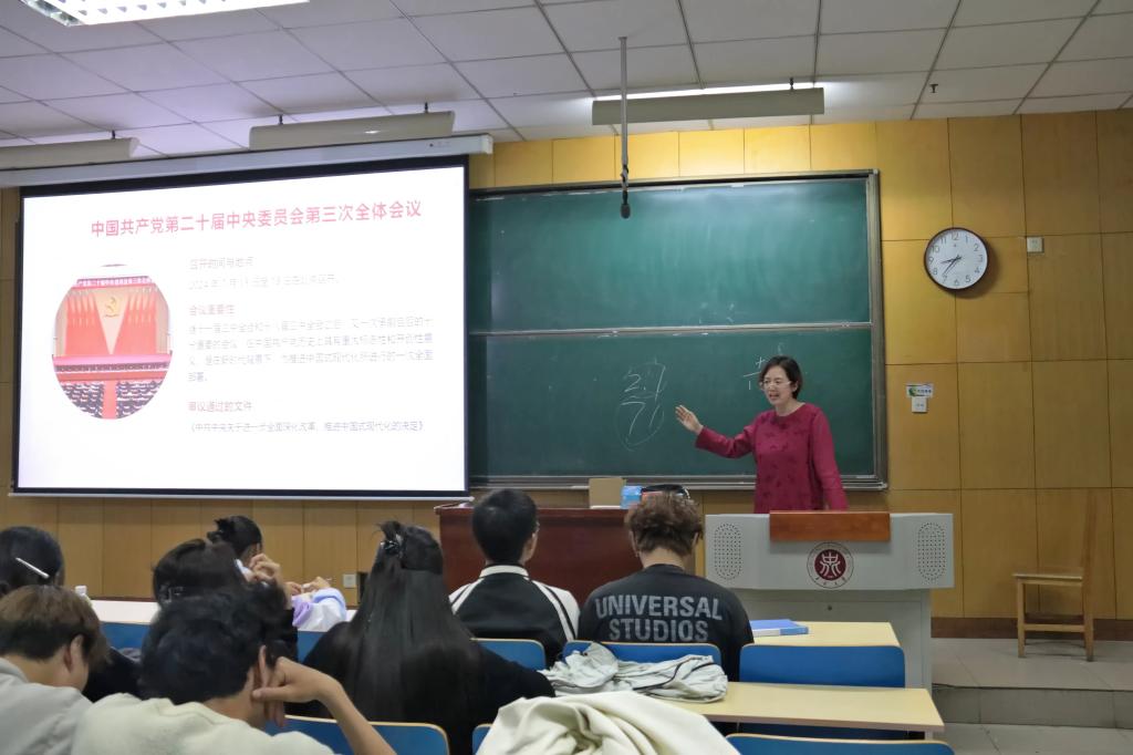 课堂上,郭书记通过“大学四问、了解内心需求、寻找幸福真谛、追寻生命意义”等深刻问题,通过自身的经历与身边的案例,为同学们拨开层层迷雾。她指出价值的创造与实现要在劳动和奉献中创造、在个人与社会的统一中实现、在砥砺自我中实现。她结合党的二十大三中全会会议精神,进一步分析艺术人在中国式现代化发展进程中的任务、使命与前景。她指出新时代大学生应将个人理想融入国家的发展大局,以新思想、新观念、新技术武装自己,为实现中华民族伟大复兴的中国梦贡献力量。通过分析习近平总书记十八大以来关注文化传承的足迹与给各界艺术家们的回信,分析2023感动中国年度人物牛犇何以感动中国,进一步阐明艺术人的价值追求,即“坚持正确政治方向,践行社会主义核心价值观,把为人民创作作为人生追求,坚持社会效益至上,紧扣时代脉搏,崇德尚艺,守正创新,用情用力讲好中国故事,做有信仰、有情怀、有担当的艺术人”。