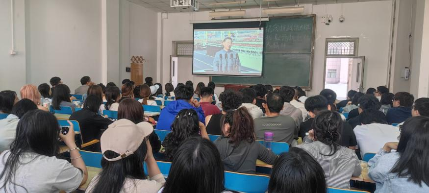 中共中央总书记、国家主席、中央军委主席习近平出席纪念大会并发表重要讲话,随后检阅部队。阅兵活动按阅兵式、分列式依次进行,历时约70分钟。受阅部队军容严整、步伐铿锵,新型武器装备整齐列阵、气势恢宏,空中梯队翱翔长空、雄姿英发,充分展现了人民军队的现代化建设和强大国防力量,彰显了我国维护和平与捍卫主权的坚定决心。师生虽身处各地,但通过线上平台汇聚云端,全程神情专注,沉浸于庄严隆重的盛典氛围之中,无不为之震撼和自豪。