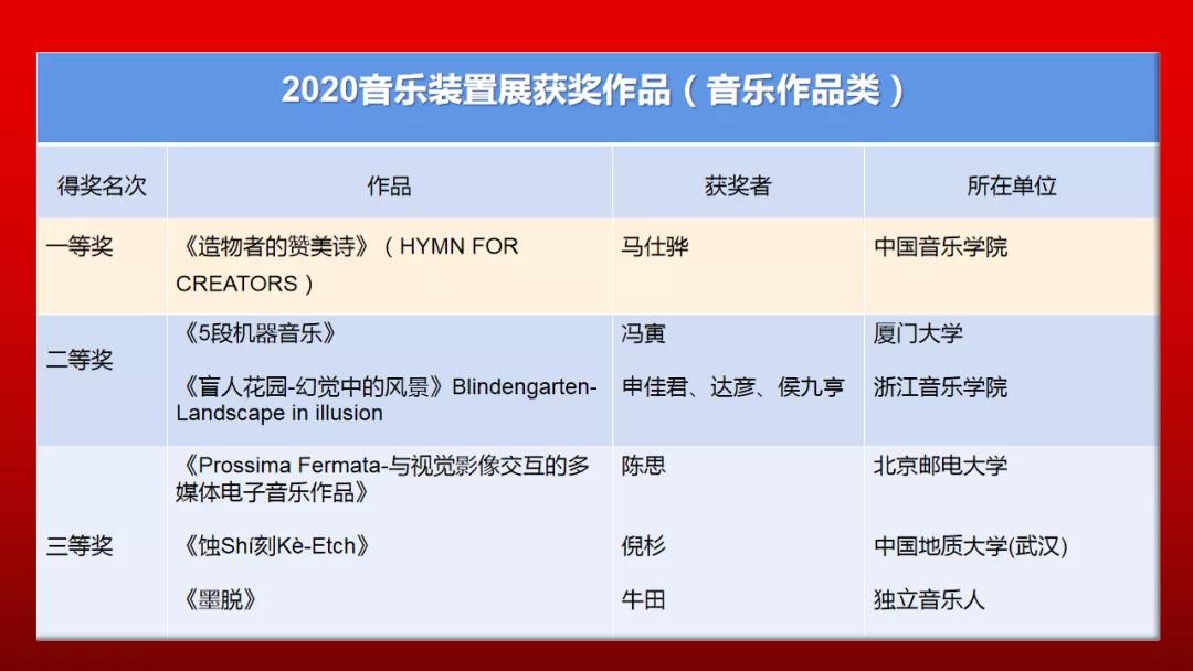 从征集论文、征集数据比赛作品、征集音乐装置展作品开始,历经多半年的辛勤工作,组委会和审稿组、评委组几十位老师任劳任怨,完全义务地为会议付出了心血。换来CSMT2020大会的成功举办。