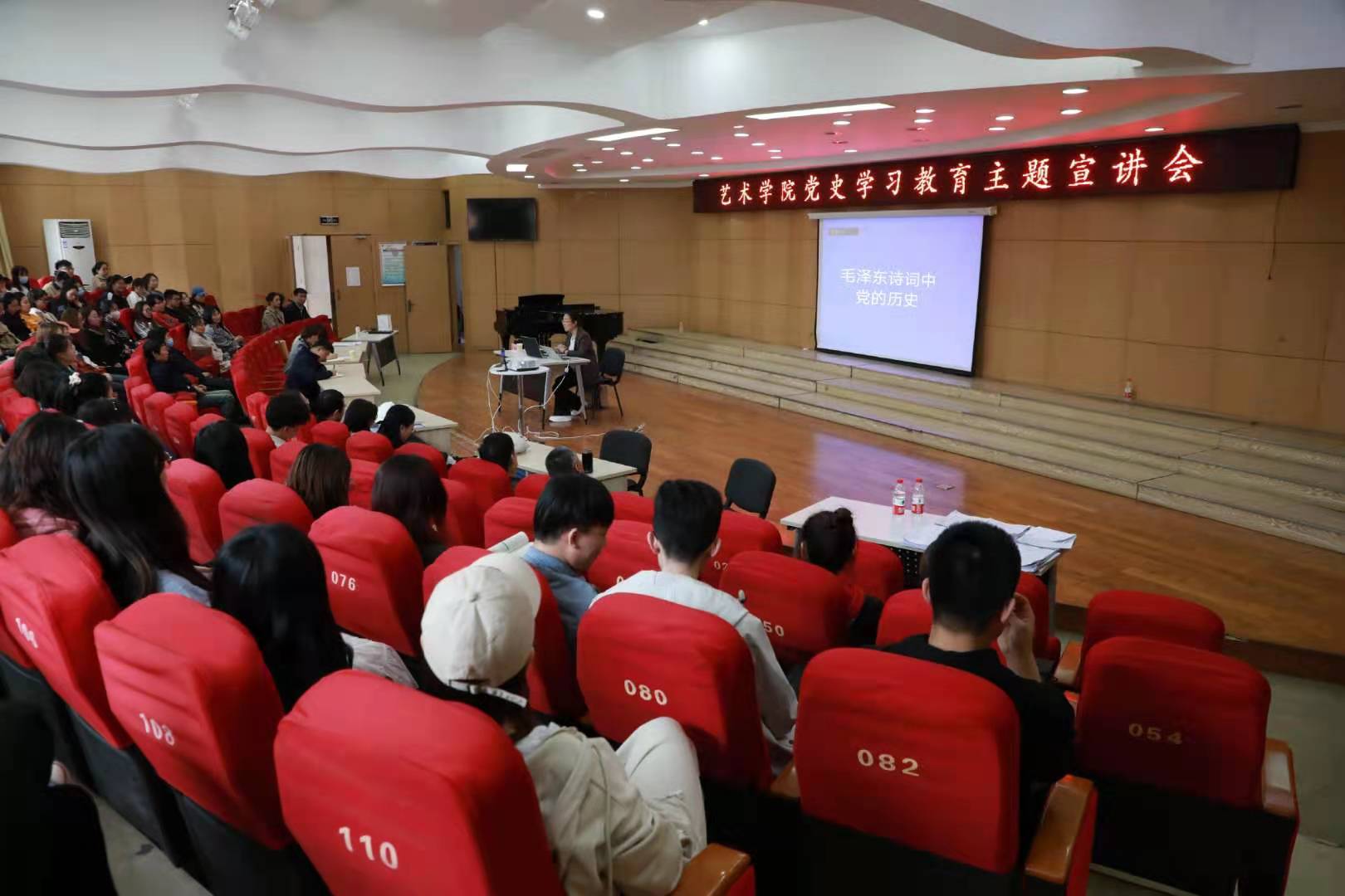 党史学习教育宣讲团王晓丽老师以《毛泽东诗词中的党史》为题,为全院师生党员作了专题讲座,学院党委书记夏瑞丽主持。