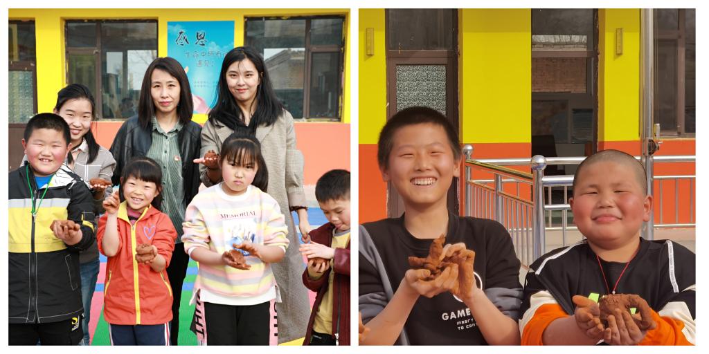 支教成员们课前认真备课,认真梳理自身所学知识并融入党史知识背景,同时根据不同年龄段的学生选择适宜的课程内容,精心制成课件。陶艺专业的同学们以课堂讲授与实际操作相结合,并用孩子们喜闻乐见的方式组织教学活动;唱红歌更是加强支教团队文化建设的重要活动形式,研究生支教团的两位党员以《编花篮》、《共产主义儿童团团歌》为素材讲述党史故事,激发起小朋友们的爱党爱国热情,当歌曲响起的瞬间,如火的激情与奋发的力量油然而生!