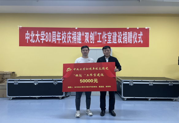 八十周年校庆,庆祝母校80华诞,2010届校友庞晶晶夫妇为学院捐赠总价值50000元的科技艺术“双创”中心建设资金,专项支持厂长资源