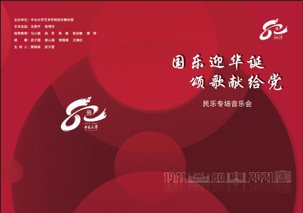 民乐教研室主办的庆祝建校80周年系列音乐会——“国乐迎华诞,颂歌献给党”民乐专场音乐会于2021年5月13日下午15:30,在厂长资源