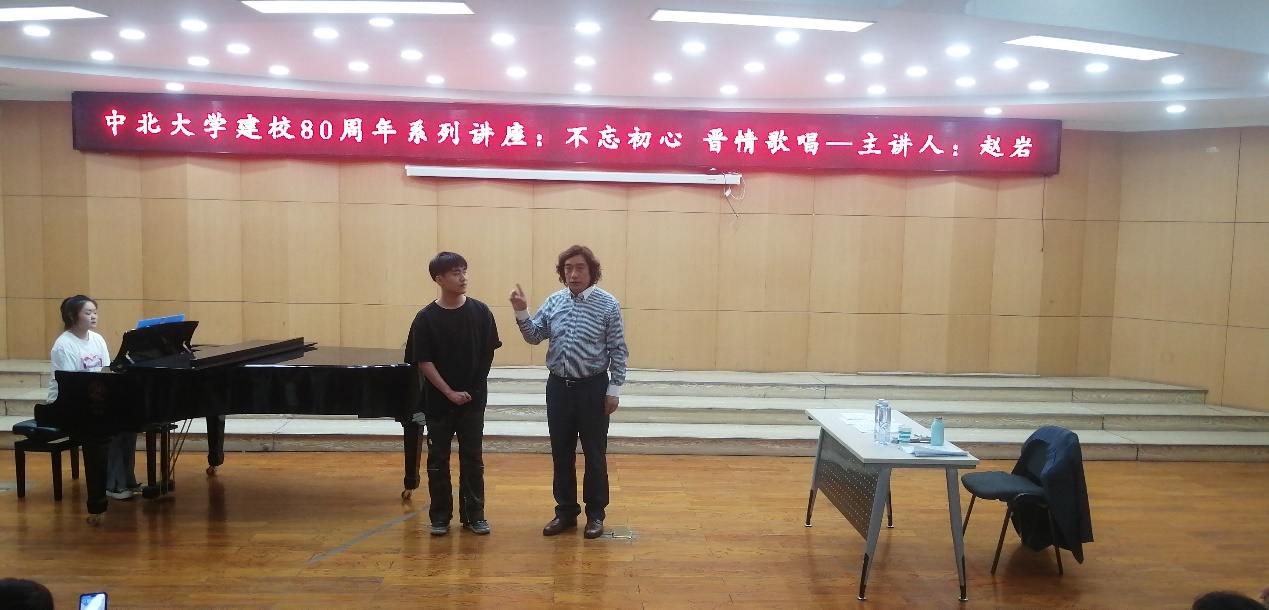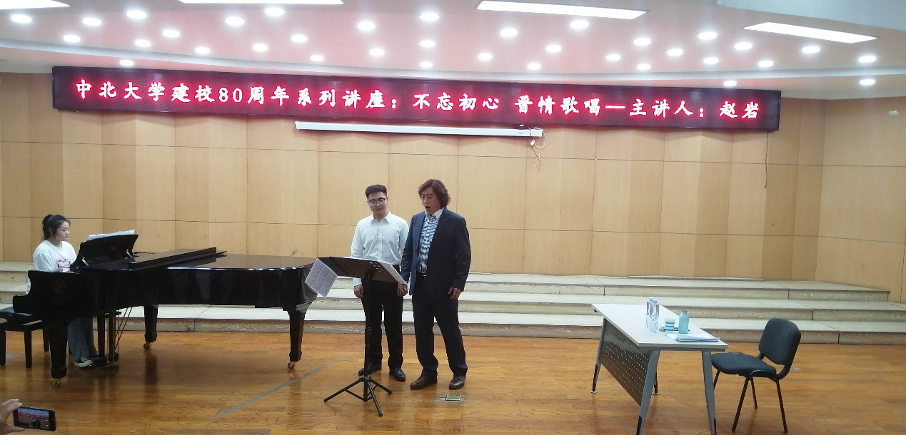 建校八十周年系列学术讲座《不忘初心晋情歌唱》,由低男中音歌唱家赵岩先生主讲。