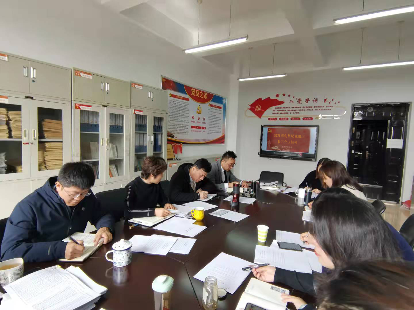 在9号楼5层小会议室召开会议部署落实基层党组织书记会议精神,学院领导班子成员、各科室负责人参加会议。会议由院党委书记栗秀萍主持。