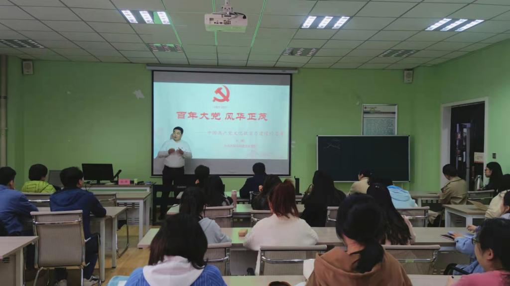 党史学习教育宣讲团杜刚老师以《百年大党风华正茂--中国共产党文化软实力建设的思考》为题,为全院教工党员作了专题辅导,讲座由学院党委书记栗秀萍主持。