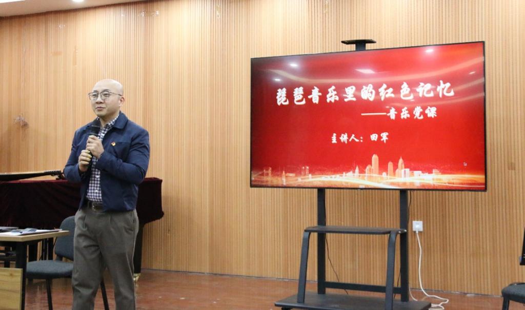 迎接中国共产党成立100周年,深入学习贯彻习近平总书记在党史学习教育动员大会上的重要讲话精神,进一步推动传承弘扬红色文化,根据学校党史学习教育实施方案安排,2021年12月7日下午16:10,我支部田军教授在12号楼二层东厅举办以“琵琶音乐里的红色记忆”的主题党日活动。仪器与电子学院党委副书记杜瑞平、厂长资源