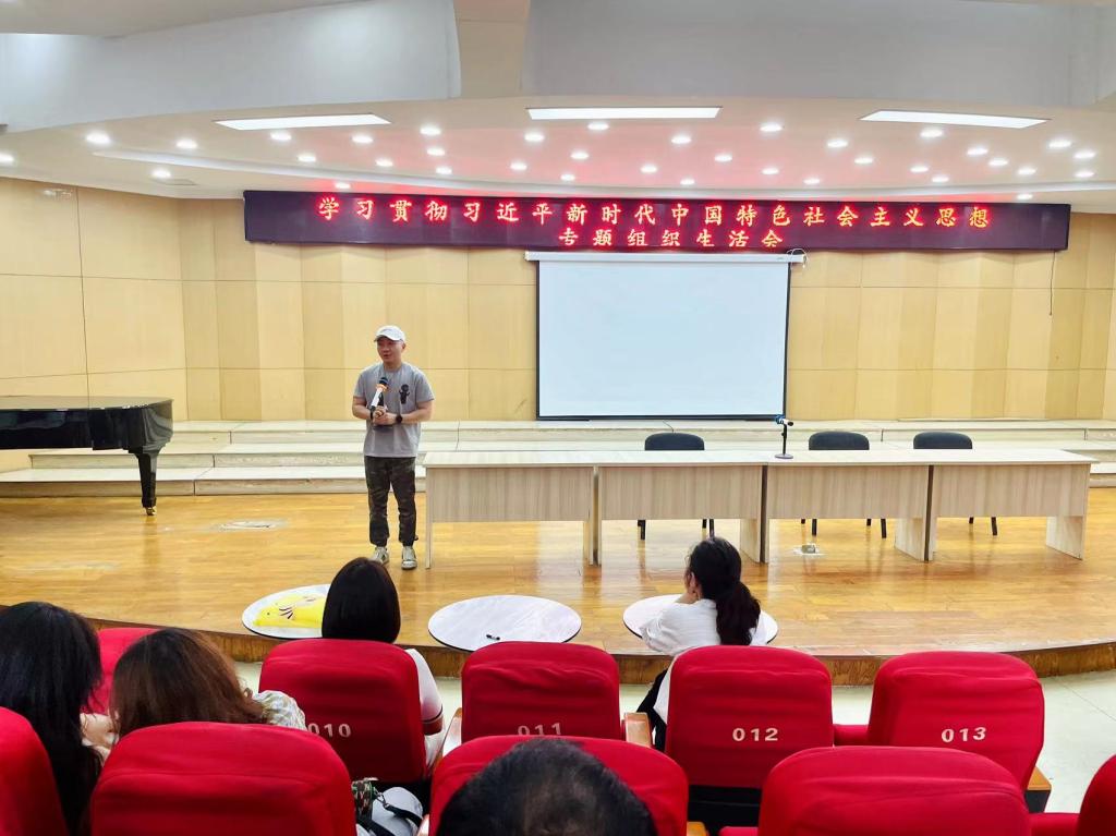 教工一支部开展学习贯彻习近平新时代中国特色社会主义思想主题教育专题组织生活会,全体支部党员一起交流学习体会,检视剖析问题,明确努力方向,大会由支部书记张鹏主持。