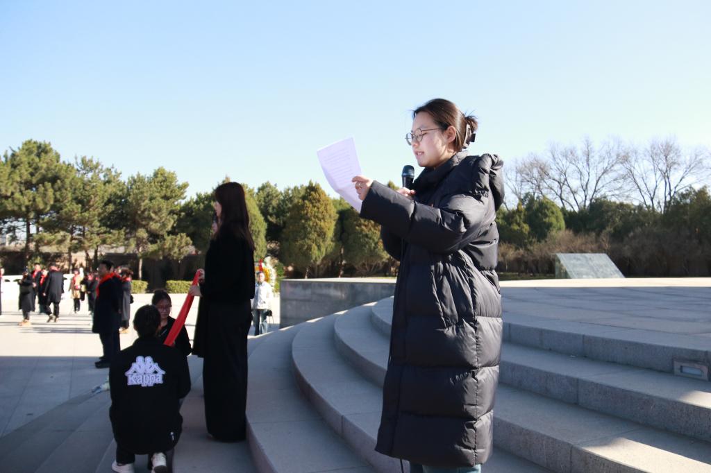 党委组织师生党员开展了以“缅怀革命英烈 赓续红色血脉 争做时代先锋”为主题的党日活动。院党委副书记田维飞、本科生第一党支部书记刘维佳、本科生第二支部书记夏志丽带领45名学生党员前往牛驼寨烈士陵园,共同追忆那段波澜壮阔的革命岁月,汲取奋勇前行的精神力量。