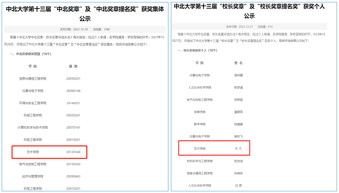 “校长奖章”获得个人:书叠青山,灯如红豆,春花秋月,几度春秋。大学期间她以艺术为媒介,乘时代之风,答时代之问,曾获得国家级奖项四项,省级奖项十余项,学分绩点为4.045,专业排名第一,推免至上海大学攻读硕士研究生。她让青春在与家国命运交织中绽放绚烂之花。她就是来自20120343班的叶凡同学。