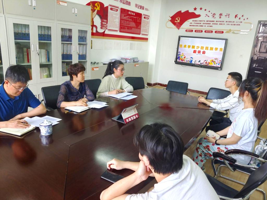 召开线上+线下少数民族学生座谈会。学院党委书记栗秀萍、党委副书记田维飞,在校的四位少数民族学生在九号楼小会议室参加线下座谈会,其余校外30余名少数民族学生在腾讯会议同步参会。座谈会由学院学生科副科长吕超主持。