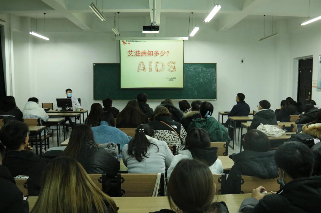 特别邀请校医院赵海滨老师来为同学们开展预防艾滋病讲座,引导同学们学习相关的艾滋病防治知识;珍惜生命、远离艾滋。