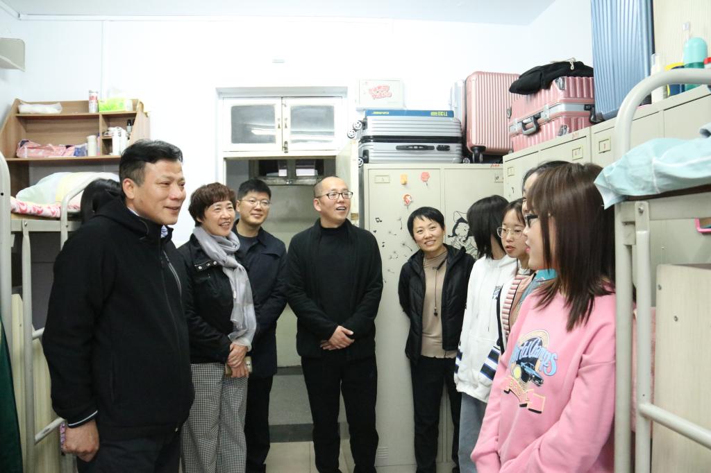 院党委书记夏瑞丽、院长王燕平、党委副书记田维飞、院团委书记杜鹃、学生科科长夏志丽老师、新生班主任王恒老师和柯枫老师、全体学生科老师以及班主任助理一起走入新生所在的学生公寓,关心慰问刚入学的研究生和本科生。