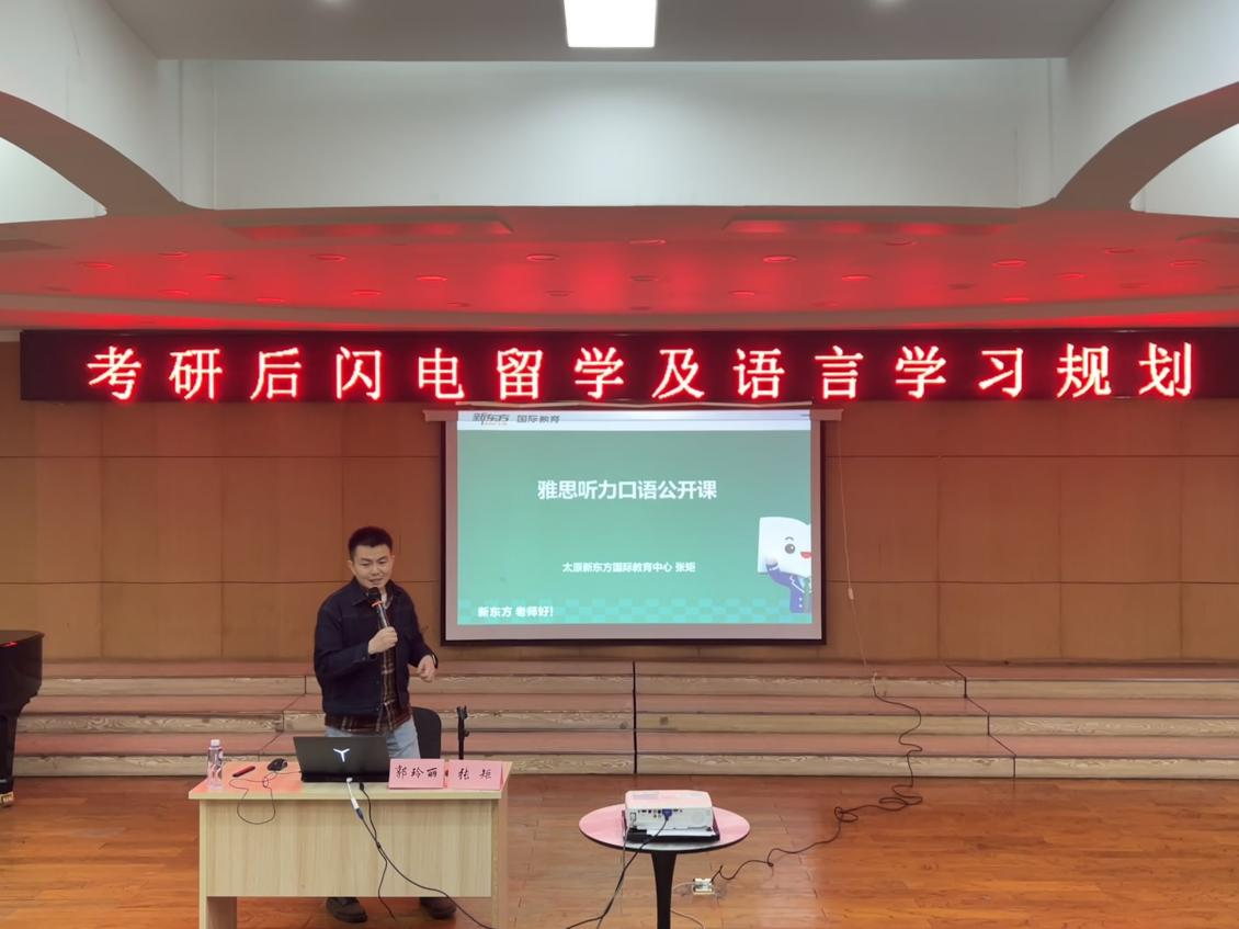 邀请太原新东方国际教育中心举办“考研后闪电留学及语言学习规划”专题讲座,新东方张钜、郭玲丽为主讲老师为毕业生们带来新的升学规划。