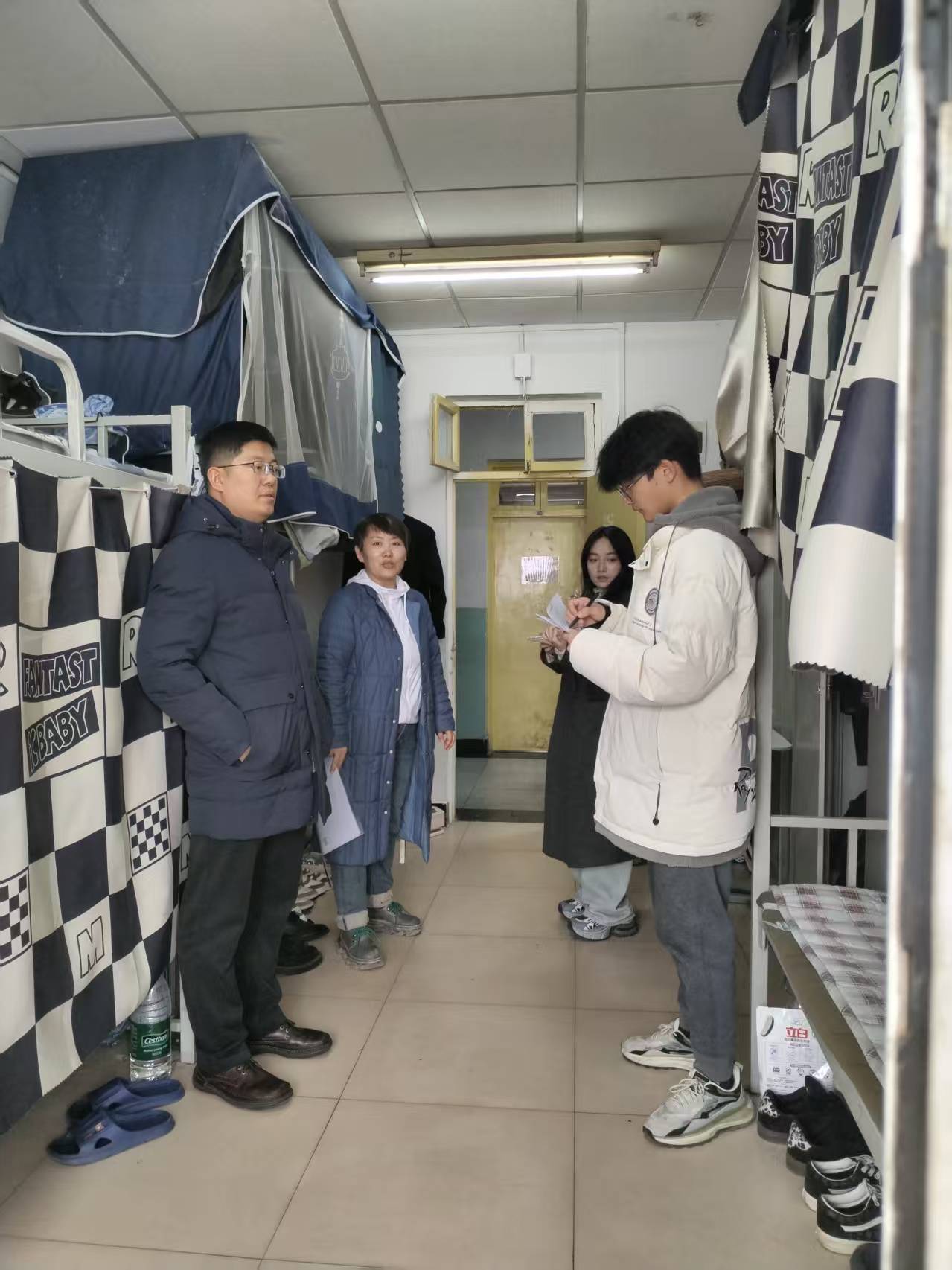 学院党委副书记田维飞带领全体辅导员及班主任老师对大一至大四全体宿舍进行了全方位、无死角的检查。