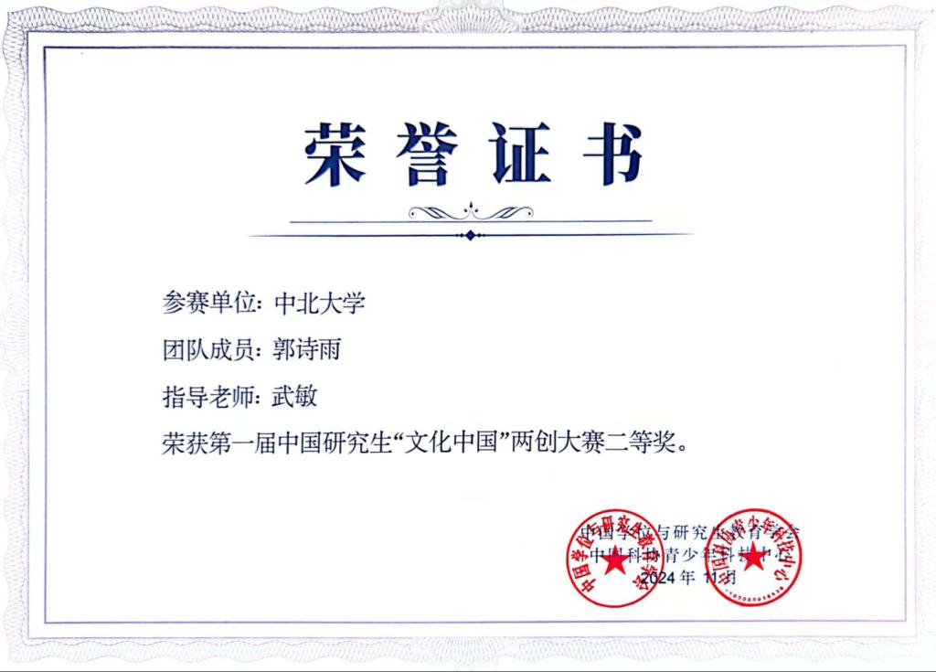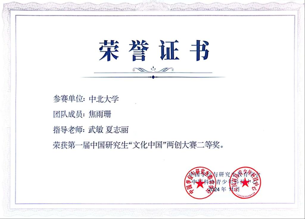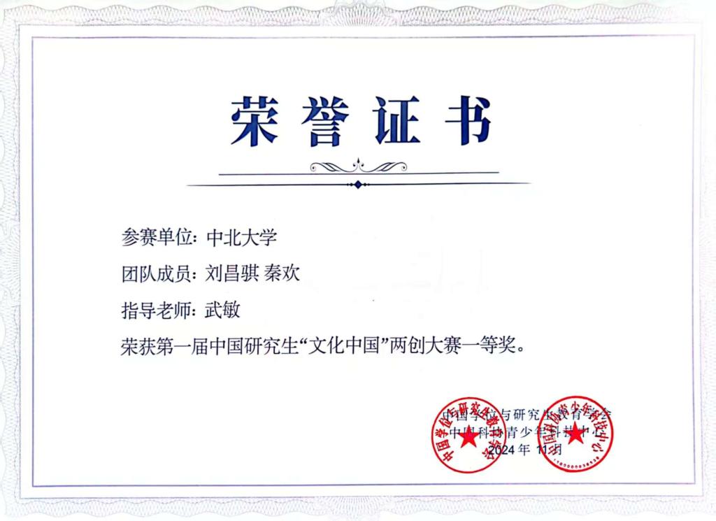中国研究生“文化中国”两创大赛是中国研究生创新实践系列大赛主题赛事之一,是系列大赛中首个文科主题的创新实践公益性赛事。大赛秉承“传承、发展、创造、创新”的办赛理念,坚持“赓续中华文脉、坚定文化自信”的办赛宗旨,鼓励研究生投身到中华优秀传统文化“两创”的创新实践中,引导广大研究生深学细悟习近平文化思想,强化传承弘扬中华优秀传统文化的使命担当,激荡起文化“两创”的创新热潮,为国家、社会发现、培养、输送文化领域“两创”型人才。