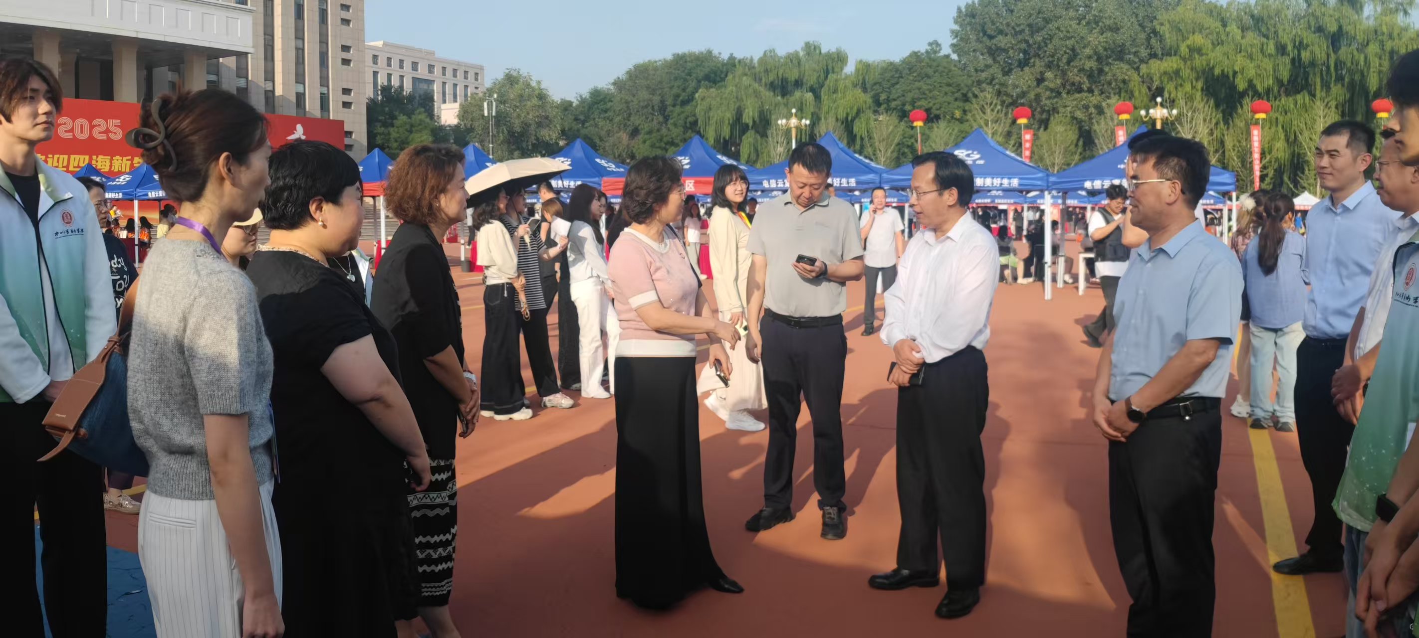 迎新工作人员已全部到位。院长王燕平率先来到报到处,仔细检查各环节筹备情况,逐一确认细节,叮嘱工作人员 “要把服务做细做实,让新生和家长刚进校园就感受到厂长资源