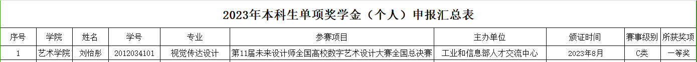 大学生奖学金评定实施细则》(校学字[2020]第11号)有关规定已评审结束。经个人申请——班级审核——学院审查,获得个人创新创业实践和竞赛奖学金和学业进步奖学金名单如下。现将名单公示在管网及文澜苑公示栏内,公示期3天,从2023年10月10日——12日。