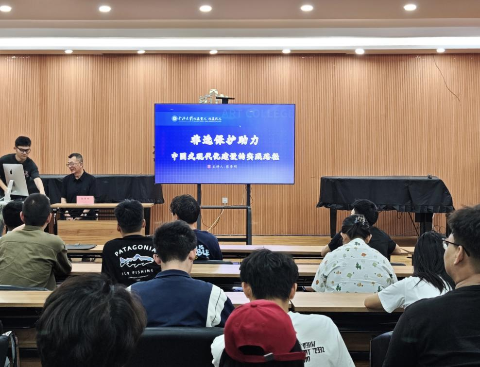 主办,特邀北方民族大学中华民族共同体学院教授张景明担任主讲人,吸引了校内外学术界、文化界以及非遗传承领域的近百名专家学者齐聚一堂,共同围绕“非遗保护如何助力中国式现代化建设”这一备受关注的核心议题,展开了一场理论与实践深度交织的精彩对话。