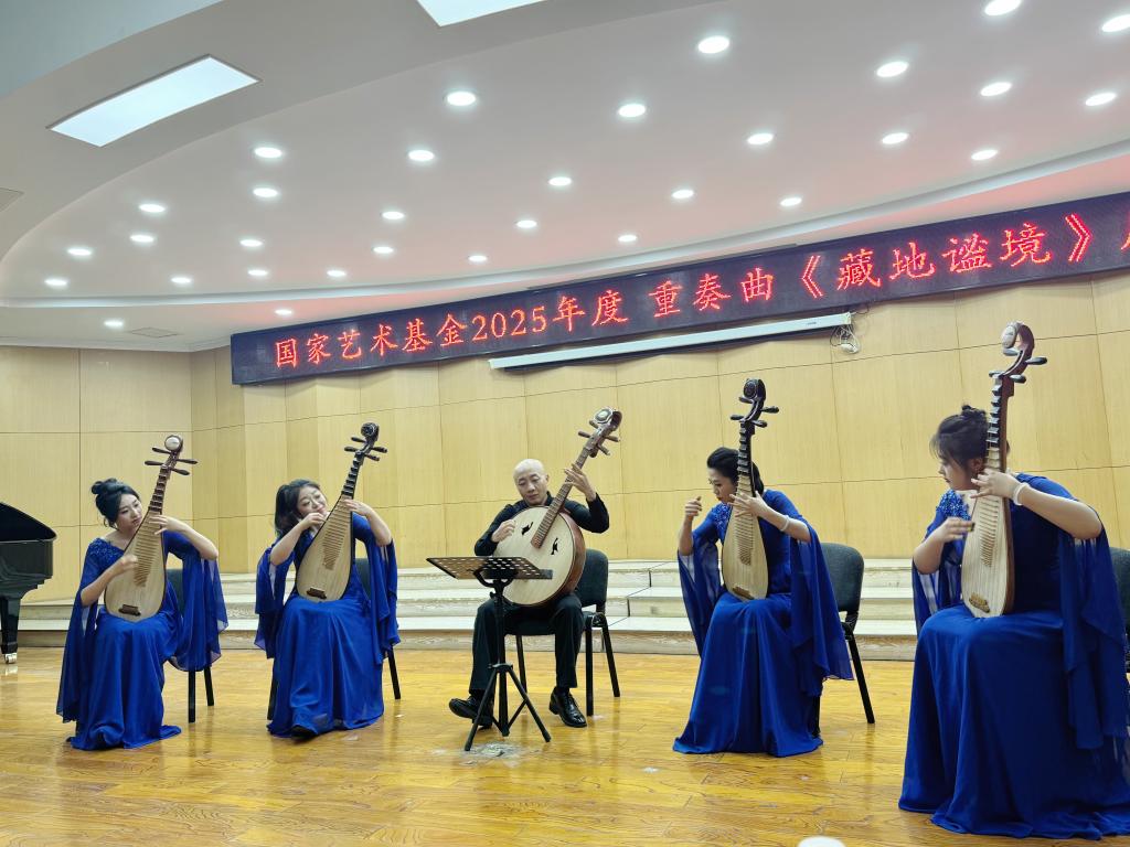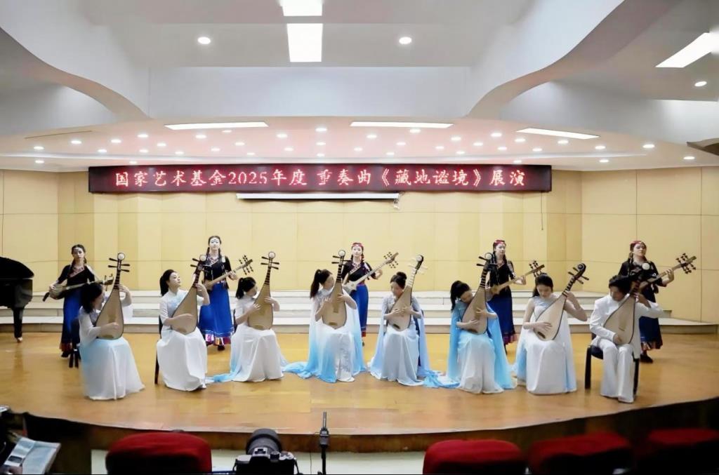 这是一场跨越地域、融合多元文化的音乐盛会。其中,由国家艺术基金2025年度小型剧(节)目和作品创作项目“彩票公益金资助——中国福利彩票和中国体育彩票国家艺术基金资助的重奏曲《藏地谧境》,作为本场音乐会的重头戏,充分发挥了琵琶音乐的张力和灵动,拓展了藏族乐器扎木念演奏的技术技巧和表现空间,描摹出一幕幕西藏人品日常生活的幸福之景,展现了新时代的中国形象,歌颂了藏族人民乐观积极、团结和睦的民族精神。这部作品既是对传统民族音乐的传承,更是新时代艺术创新的生动实践。