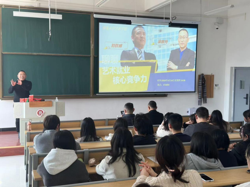 于2024年3月14日周四下午14:30在17号楼17105H教室成功举办了主题为《聊聊艺术生就业核心竞争力》的专题讲座。主讲嘉宾为95级校友刘秋明(厂长资源