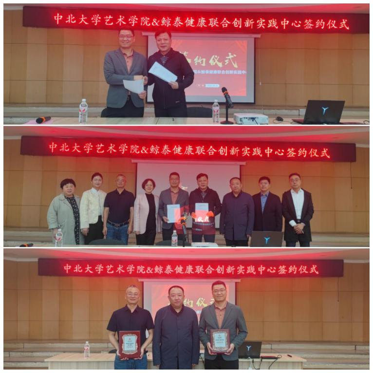 &鲸泰健康联合创新实践中心”,并代表学院与鲸泰健康科技(东莞)有限公司签订合作协议书。