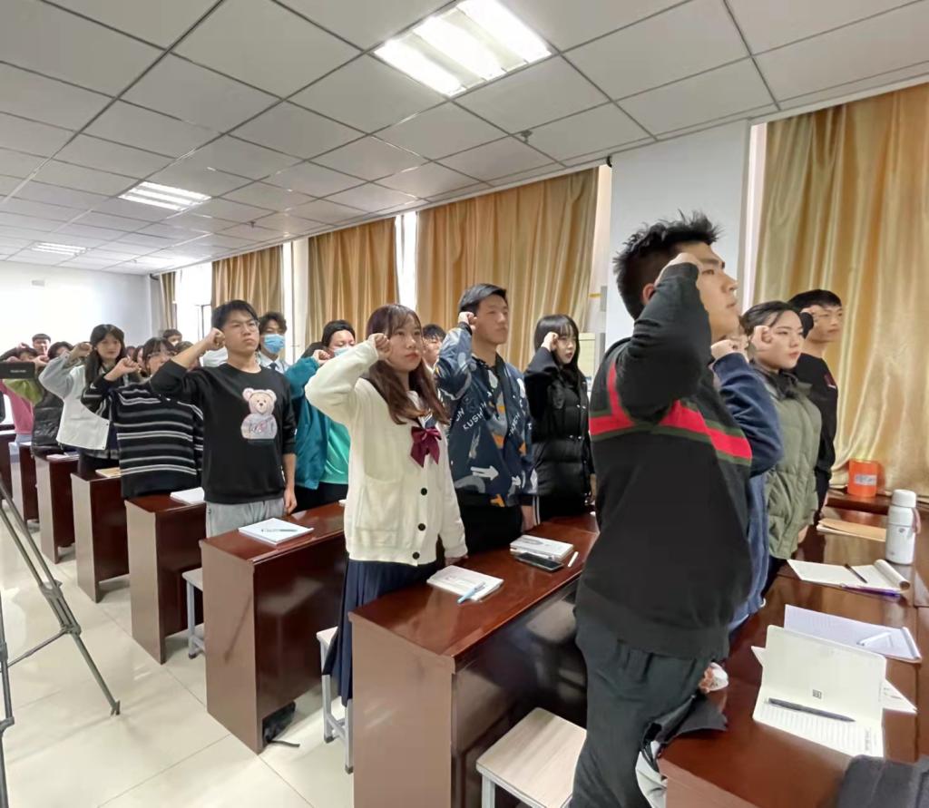 学生代表何朝晖带领全体学生干部重温入团誓词。铮铮誓言,点亮的不仅是团员职责与使命,亦是延承热情燃烧的革命激情;承诺的不仅是规范己身艰苦奋斗,更是要让自己活成榜样影响更多人!人文学院学生代表新学员发言,她表达了不忘初心勇担重任的决心,立志要做有志气、有骨气、有底气的中北青年,把青春奋斗融入伟大事业,为实现中华民族伟大复兴的中国梦贡献力量。